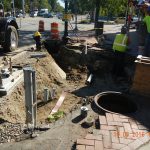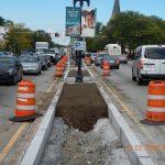 Fred DeRoma & Son, Inc. installed a new drip irrigation system, including water main tap, meter pit, backflow preventer, electrical service, and irrigation controls. Construct raised planting beds using granite edgestone for landscaping along the median and in the traffic islands, backfilling with planting soil. New landscaping was added throughout the median. We also constructed cement concrete sidewalks and pedestrian ramps, with detectable warning panels along Blue Hill Avenue using new granite edgestone and existing granite edgestone. We also installed new street lighting infrastructures.